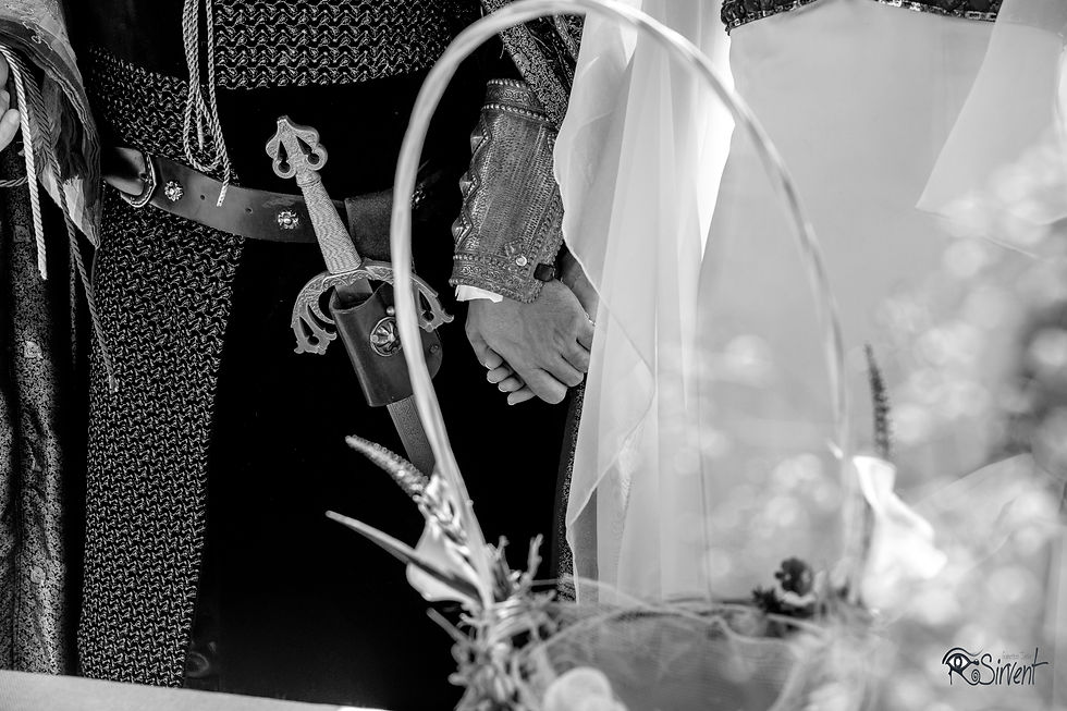 Y llegó el día en el que me ofrecieron ser testigo con mi cámara de una boda medieval. No me lo podía creer, allí estábamos los dos, mi excelente compañera Iris Gutiérrez y yo en pleno medievo rodeados de caballeros, damas, cruzados, nobles, vasallos, etc... para celebrar la boda, o como ellos mismos la definieron, bodieval de Lady Ana Belén y Sir Jorge en La Real Bodega de Carlos III de Aranjuez. Los novios aparecieron montados en sendos corceles y fueron recibidos con espadas en alto por los caballeros presentes. La colorida y emotiva ceremonia fue seguida de un cóctel y posterior celebración en el interior de las bodegas. En definitiva, un espectáculo de color, una original e inolvidable boda de una maravillosa pareja, que quisieron hacer de su día un verdadero regalo para cualquiera de los sentidos.